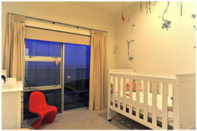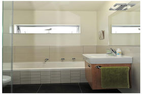 Subtle tones of warm white, Dulux Sandfly Point have been used throughout the interior and there is a warm grey-green, Pencarrow feature wall in the guest bedroom. Luxaflex duette, Winter Pear blinds are fitted to windows in the front entrance, dining room and kitchen. Natural-toned, stain and fade-resistant carpet, with thick underlay, is fitted in the living room, hallway and bedrooms. There is light oak, floating flooring in the open plan dining room and kitchen. Large, charcoal ceramic floor tiles line both bathrooms.