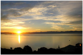 From the clock tower, the outlook extends over the port and marina to the Moutere hills, Ruby Bay bluffs, Kina cliffs and Motueka. Ahead, views sweep across the Haven, Boulder Bank and lighthouse to the wide expanse of Tasman Bay, as it extends along the snow-capped Western ranges to Separation Point and the sea beyond. It is an ever-changing panorama, which can alter dramatically from a sunlit seascape to a spectacular Nelson sunset.
