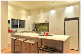 The house is designed with a central living area, flanked by two wings, one containing the master suite; the other housing two guest or family bedrooms and the main bathroom. Its clean, contemporary lines, mono-pitched roof and calm colours fit well into the natural environment. The building carries a Certified Builders' Ten Year Guarantee, which expires in 2018.